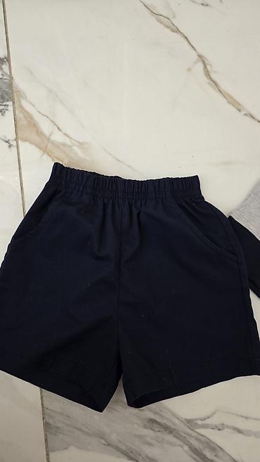 - Темно-синие шорты с эластичным поясом и боковыми карманами.