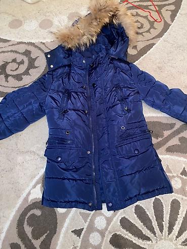 Детская верхняя одежда, набор из нескольких позиций. 1) Синее стеганое пальто до середины бедра: - утеплённое, прямой крой - капюшон со съёмной опушкой из искусственного меха - центральная молния ...