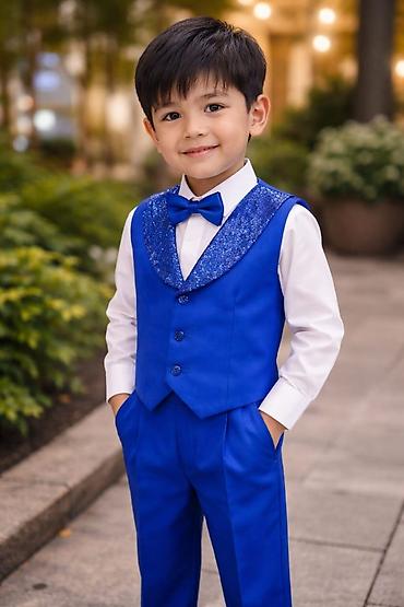 Детский нарядный костюм для мальчика (тройка) на 18-24мес покупали в Таш-рабате за 8500 сом 💸 - Цвет: темно-синий - Состав комплекта: пиджак с укороченными фалдами, жилет на пуговицах, белая рубашк...
