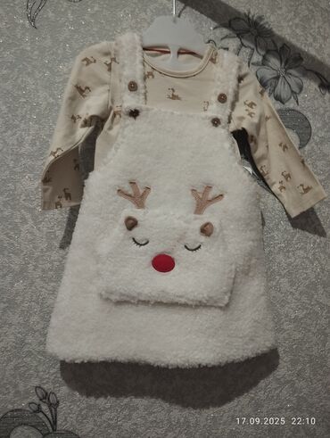 Набор детской одежды для девочки, примерно на возраст 2–4 года (ориентируйтесь по фото и длине рукавов). В комплекте: - Платье-миди кремового цвета: верх — трикотаж с фактурной вязкой, низ — много...