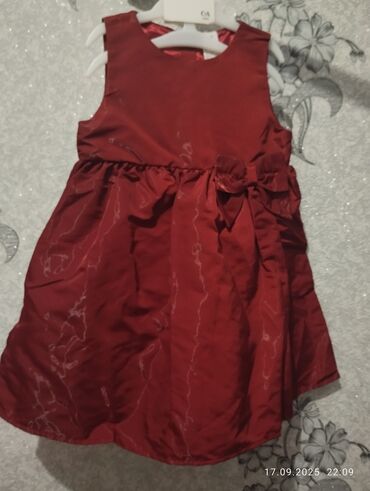 Отдам даром Комплект детской одежды для девочки. Состав набора: - Джинсовое платье-рубашка темно-серого цвета с принтом в горошек и маленькими бантиками. Воротник-стойка, длинные рукава, централь...
