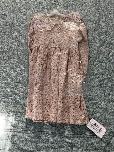 Набор детской одежды для девочки (примерный рост 110 см, 3-5 лет): 1) Платье с длинным рукавом - Цвет: тёмно‑синий - Принт: мелкие цветы в розово‑голубой гамме - Круглый вырез, приталенный верх, ...