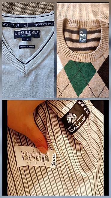 Детская одежда для мальчика, 5–8 лет. - Свитер Benetton, молочный цвет, фирменная вышивка-эмблема на груди, плотная вязка, манжеты и низ на резинке. Размер: 5–7 лет. Цена на фото: 300 сом. - Джог...