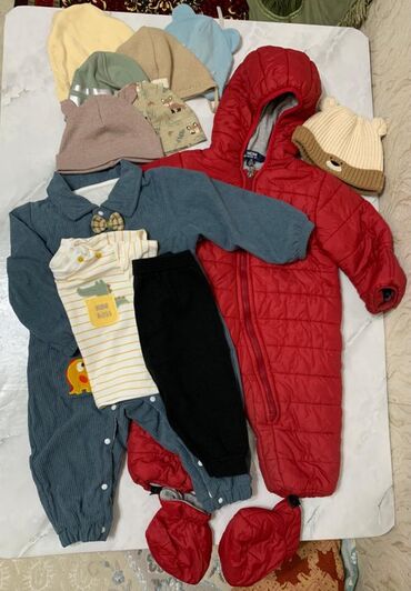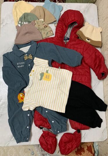 Все за 1000 сом отдам Состояния как новый все брендовый 🇹🇷🇹🇷🇹🇷Комплект детской одежды для мальчика (0–6 мес. ориентировочно): Состав набора: - Тёплый красный утеплённый комбинезон-конверт с капю...