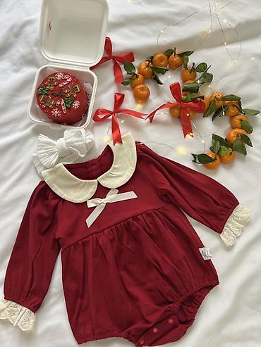 Набор детской одежды для девочки (0–12 мес., по фото): - Красное платье-боди с длинным рукавом: воланы спереди, декоративный бант, нижняя часть на кнопках для удобной смены подгузника, застёжка на...