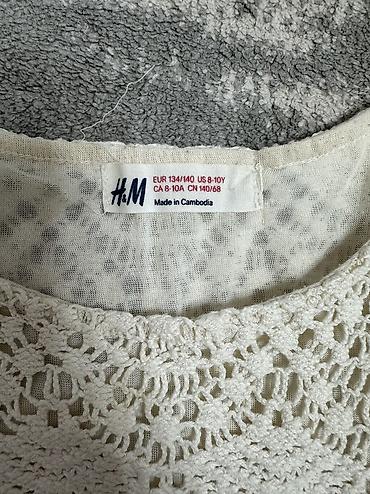 Комплект детской одежды для девочки (примерно на рост 120 см — ориентируйтесь по замерам/ярлыку на фото): 1) Платье с длинным рукавом: - Нежно‑бежевый фон с мелким цветочным принтом. - Кружевной д...