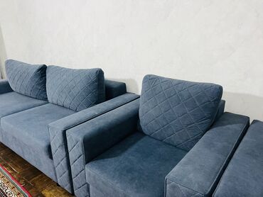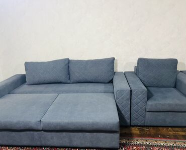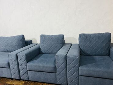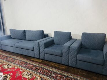 Элегантный комплект мягкой мебели, состоящий из трехместного дивана и двух кресел, выполненных в серо-голубом оттенке. Обивка дивана и кресел украшена ромбовидной стежкой на спинках и подлокотниках, что придает комплекту изысканный вид. Диван оснащен выдвижным механизмом, позволяющим трансформировать его в удобное спальное место. Подлокотники широкие и устойчивые, что обеспечивает дополнительный комфорт. Этот комплект идеально подойдет для гостиной, создавая уютную и функциональную зону для отдыха.