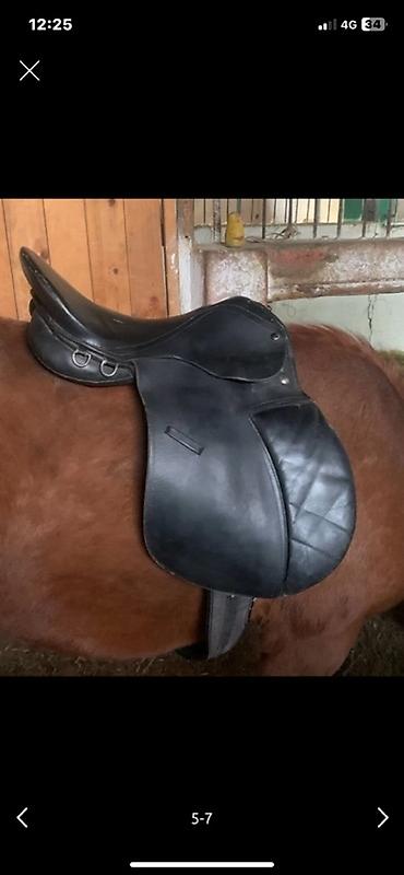 - Классическое английское седло из чёрной кожи с глубокой посадкой.