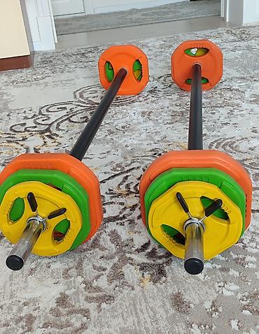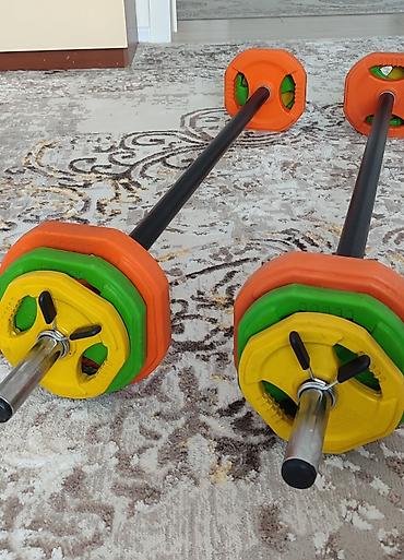 Комплект для силовых тренировок: 2 штанги с дисками по 20кг , состояние отличное. с креплениями .цена за одного 4000