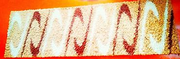 - Дорожка-полотёр: мягкий ворс, волнообразный узор в бежево-коричневой палитре, прямоугольная форма.