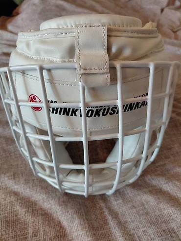 - Шлем защитный с решёткой (белый, фиксируется ремнями)