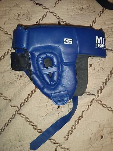 - Шлем боксерский синего цвета с защитой скул, регулируемые ремни, маркировка aiba, надпись Mix Fight.