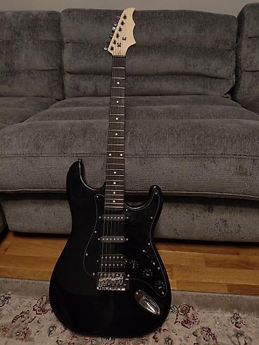 - Электрогитара типа Strat, цвет черный, глянцевое покрытие