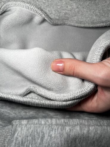 Серый теплый спортивный костюм из плотного трикотажа с начёсом (внутри мягкий флис). Комплект из худи и джоггеров. Рост 150см. Худи: - Капюшон на толстых контрастных шнурах с металлическими наконеч...