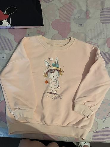 - Свитшот светло-персиковый с принтом девочки-кролика и надписью “happy”: мягкий футер, эластичные манжеты и нижняя резинка.