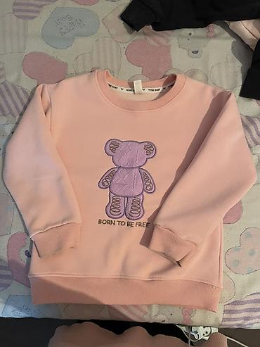 - Свитшот пудрово-розовый с объемной вышивкой мишки и надписью “Born to be free”: круглый вырез, трикотажные манжеты и пояс.