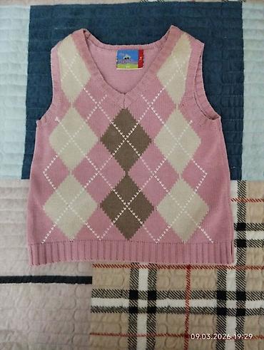 - Вязаный жилет розовый с ромбами (аргайл): V-образный вырез, эластичные резинки по горловине, проймам и низу. Хорошо сочетается с рубашками и водолазками- за 160сом.