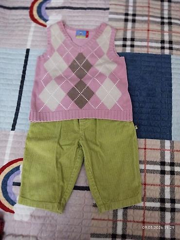 Детский комплект одежд:- Вельветовые брюки оливкового цвета: мягкий крупный рубчик, посадка на резинке, боковые карманы, прямые штанины. Удобны для сада и прогулок в прохладное время- за 250сом.