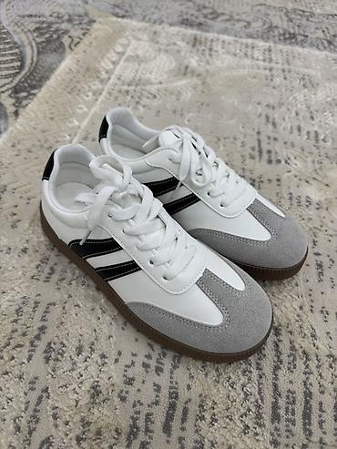 - Цвет: белый с чёрными полосками, серые замшевые накладки, коричневая подошва