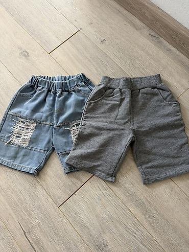 Джинсовые бело-серые шорты, закрывающие колени и сине-зеленая футболка на возраст 5(6) лет. Новые. За обе вещи 800 сом