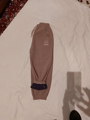- Джоггеры бежево‑тауповые в рубчик с вышивкой медвежонка “hipidnox”, на теплой подкладке, пояс на резинке, манжеты по низу.