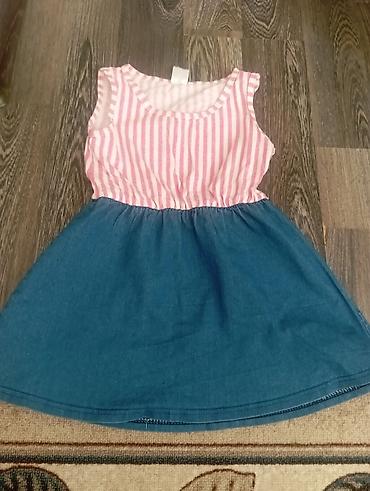 - Летнее платье без рукавов: верх в розово-белую полоску, круглый вырез; юбка из денима синего цвета, лёгкая А-силуэтная посадка.по 150сом