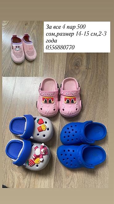 • «За все 4 пар 500 сом, размер 14–15 см, 2–3 года» (летние/домашние сабо и кеды).