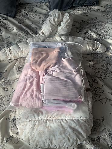 Набор одежды для девочки (примерно 0–9 мес, по биркам и фасонам). Мягкие пастельные оттенки, удобные материалы для дома и прогулок. В комплекте: - Демисезонный конверт-пуховик розовый с капюшоном ...