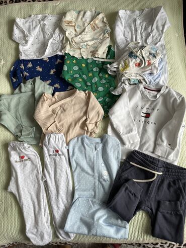 Пакет вещей для новорожденного до 6 месяцев. Б/у. Полотенце с уголком. Три пеленки. Пояс от колик на живот. Кофточка. Шапочка. Два боди. Три слипа. За всё 1000 сом.