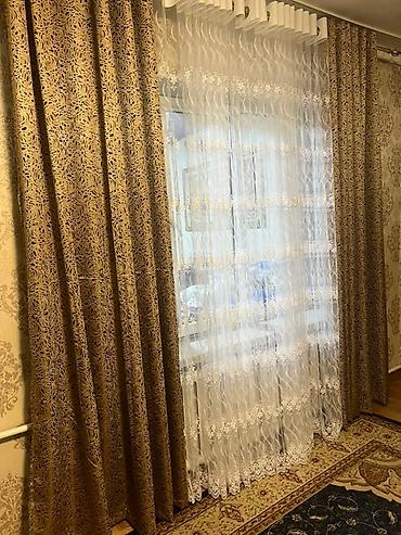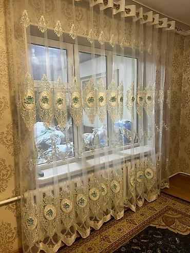 - Материалы: портьерная ткань плотная, с благородным блеском; тюль — прозрачная сетка/органза с машинной вышивкой.