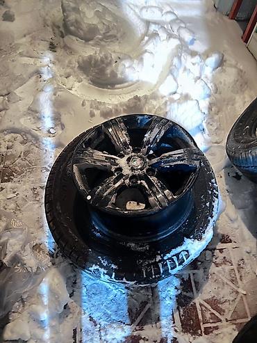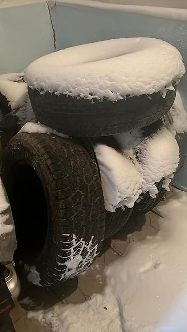 - Под диски собраны шины SUV класса (виден всесезонный/зимний рисунок протектора с крупными блоками и дренажными канавками). На фото — комплект из четырех покрышек.