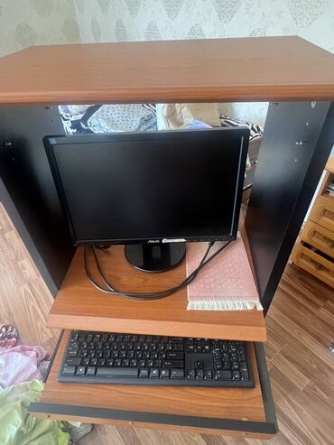- ЖК‑монитор ASUS (диагональ визуально около 19–22"): настольная подставка, подключение кабелем VGA/HDMI/DP — на фото виден кабель.