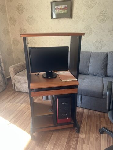 Подходит для дома, учебы и офиса: все компактно размещается на мобильной стойке, есть места под периферию и системный блок.