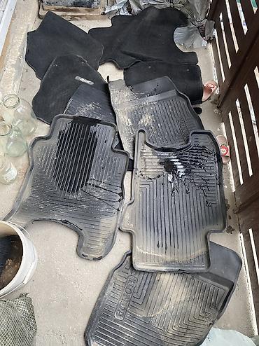 - Резиновые: черные, с глубокими продольными канавками для удержания влаги и грязи, рельефным бортиком по периметру. На нескольких ковриках оттиск “HONDA”.