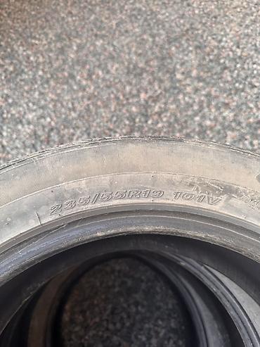 На боковине хорошо читается маркировка 235/55R19 101V. Трещин на бортах и видимых порезов нет по кругу. Протектор изношен равномерно. Перед установкой рекомендуется балансировка и проверка на герметичность.