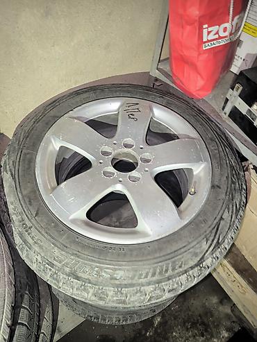 - Диски: 5‑спицевые, серебристые, 5 отверстий под крепёж, центральное отверстие под ступицу стандартного размера для большинства легковых авто. Клапаны установлены. На одном диске есть пометка маркером.
