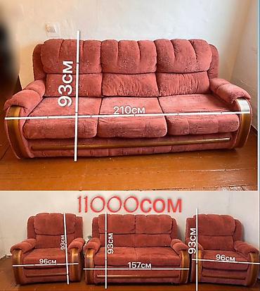 Мягкий комплект мебели в классическом стиле: диван 3-местный + диван 2-местный + два кресла в хорошем состоянии . Двух ярусная кровать за 6000 сом мини торг вместе за 15000 сом
