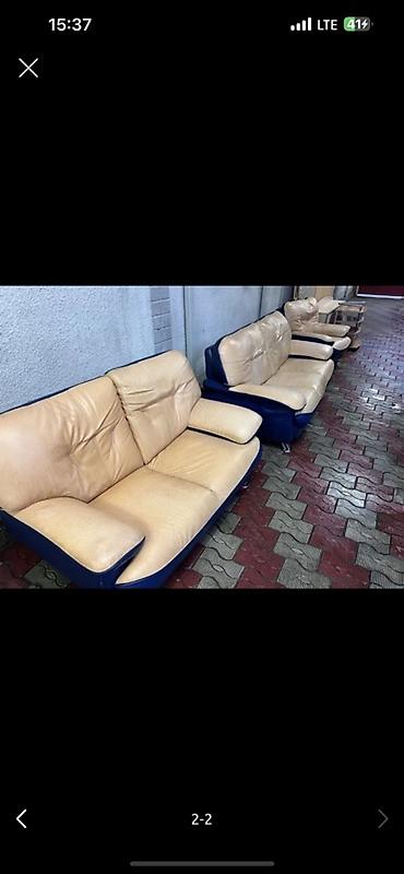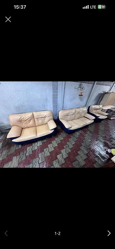 Мягкая мебель: комплект из дивана и кресла-кровати в едином стиле. - Конфигурация: трехместный диван + кресло, оба с раскладным механизмом трансформации в спальные места. - Тип механизма: выкатной...