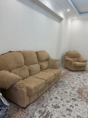 Диван и 2 кресло в классическом стиле с ажурными накидками. - Комплект: 3-местный диван + 2 широких кресла - Обивка базовая: ткань с цветочным жаккардовым рисунком в теплых бежево-золотистых тонах...