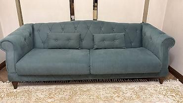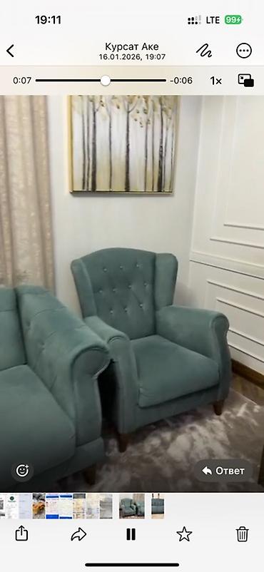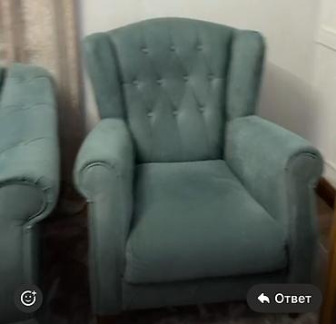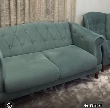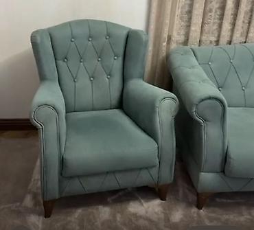 Комплект мягкой мебели в классическом стиле: диван и кресло(а) цвета пыльной бирюзы.