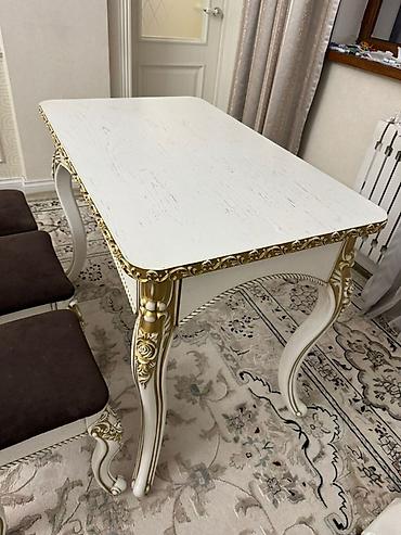 Комплект мебели в классическом стиле: стол и 3 табурета.