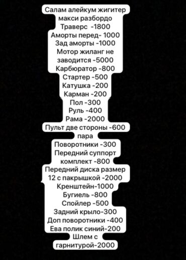 Подходит для скутеров/мотоциклов — универсальные элементы и пластик. Отлично для ремонта или тюнинга: багаж, свет, подвеска, пластик, рулевая часть.