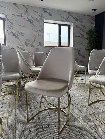 На фото — несколько одинаковых стульев; часть упакована плёнкой. Приятная тактильность ткани и устойчивая металлическая база делают их удобными для длительного сидения и ежедневного использования.