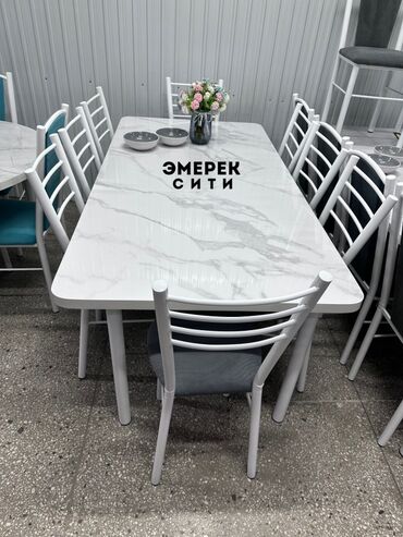 Акция‼️Акция ‼️ 23500с комплект‼️ Комплект на 8 персон😍☑️ 📞 Адрес ош базар Бейшеналиева 22/5 Обеденная группа в современном стиле: прямоугольный стол под «белый мрамор» и стулья с мягкой обивко...