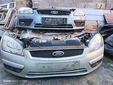 Цвета: серый/серебристый. Эмблемы Ford и заводская решётка в комплекте. Подходят для Ford Focus 2 (примерно 2005–2011 г.в.) — проверяйте совместимость по форме фар и бампера под вашу модификацию. Возможна продажа как комплекта, так и отдельных элементов (бампер, фары, ПТФ, решётка, усилитель, кронштейны).