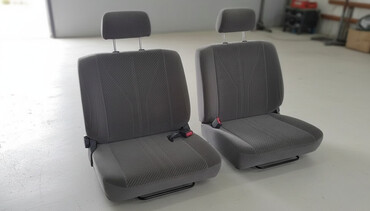 Двухместное сиденье от микроавтобуса/минивэна - Материал: тканевая обивка, комбинированные вставки с серым узором - Цвет: серо‑графитовый - Конструкция: цельная спинка и подушка, нижние крепёжные ...