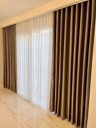 - Комплекты: плотные портьеры + легкий полупрозрачный тюль.