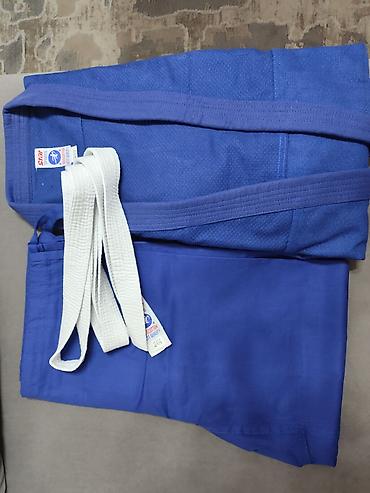 Кимоно для дзюдо (дзюдоги) - Комплект: куртка (васари), штаны с усилением в области коленей, пояс. - Цвета: белый и синий. - Покрой классический: перекрестная запахная куртка с плотной ворсистой т...