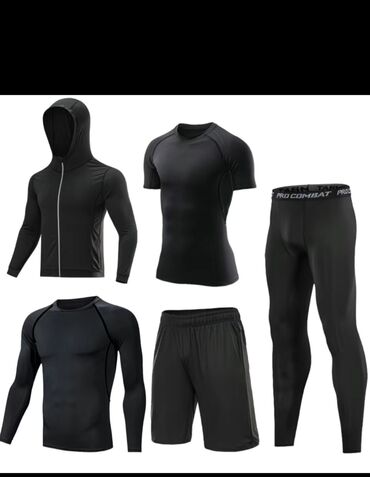 Комплект спортивной компрессионной одежды (6 предметов), черный цвет.