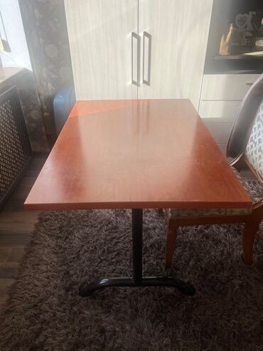 Продаю три стола для кафе/бистро на центральной опоре, по 8000 сом. - Размер столешницы: 80×60 см - Высота: 80 см (указано на фото ?80) - Форма: прямоугольная, скруглённые углы - Столешница: под д...